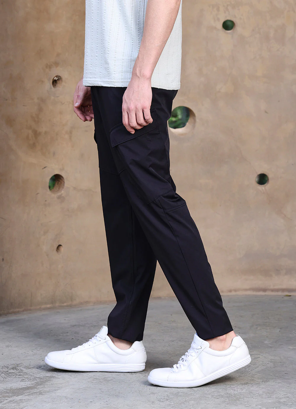 Designed for modern versatility, these navy cargos are cut from a cotton blend fabric that balances breathability with durability. The slim fit gives them a streamlined, contemporary edge while multiple utility pockets keep the design practical yet stylish. The fabric’s smooth finish and slight stretch ensure effortless comfort, making them ideal for all-day wear.